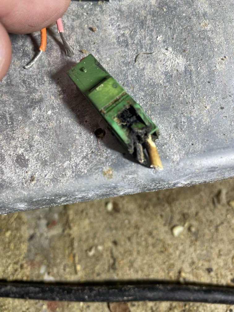 The damaged connector was removed, and we cut the wire back to clean, undamaged copper. This step matters since leaving a compromised wire in place can cause repeat failures later.