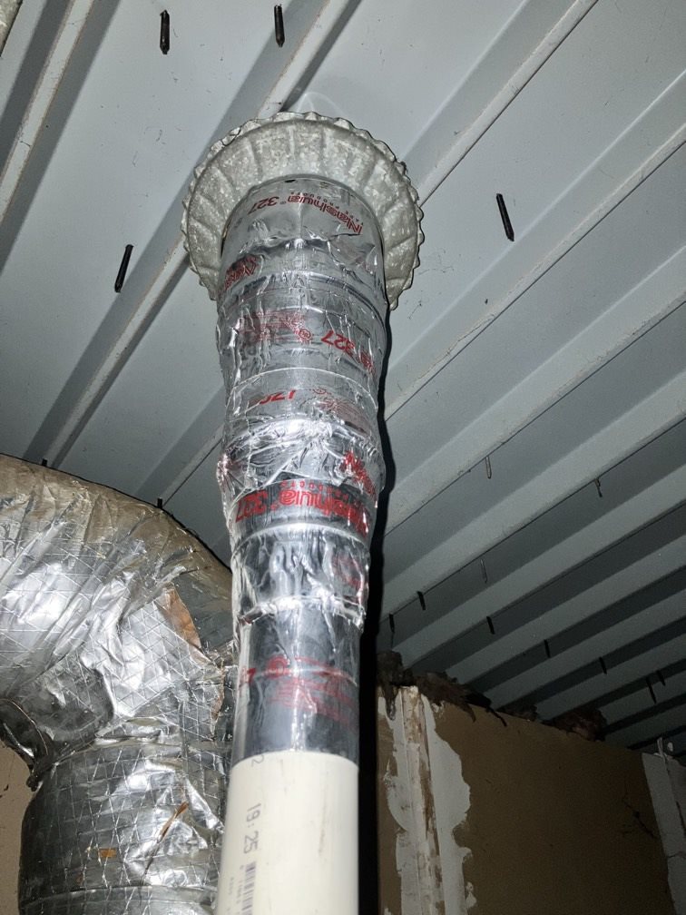 We also addressed the taped joints visible in the photos, reinforcing them so they functioned as part of a complete system rather than a temporary patch. Every step focused on restoring safe exhaust flow from the gas water heater up and out of the home.