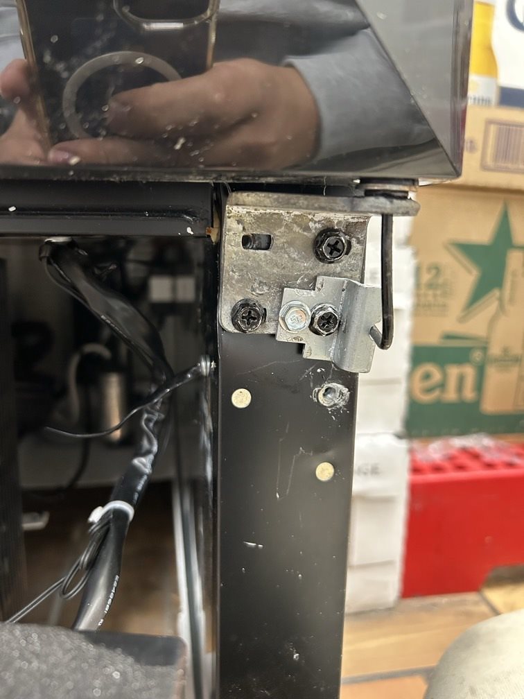 The gasket was torn, and the hinges were visibly damaged. From the photos, you can see how the door sagged and failed to sit flush within the frame. That kind of misalignment forces the refrigeration system to work harder while still letting cold air escape.